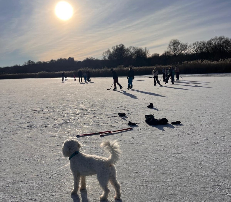 Neben dem sportlichen Vergnügen eröffnete der Tag zugleich eine neue Perspektive auf das Naturschutzgebiet. Wer sonst durch das Fernglas in der Schutzhütte Vögel beobachtet, stand nun selbst mitten in der winterlichen Landschaft – auf dem Eis, umgeben von klarer Luft und beeindruckender Ruhe.