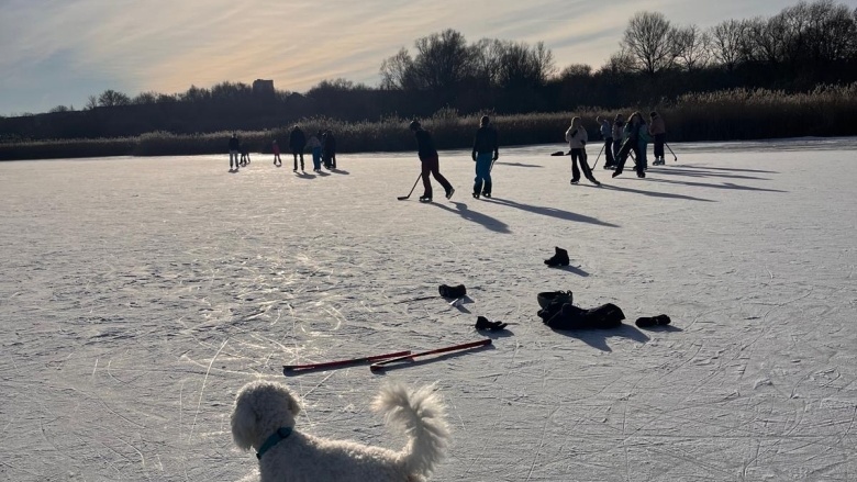 Besonders die Kinder hatten sichtlich Spaß. Einige nutzten den kräftigen Wind geschickt, um mit ihren Wings und Schlittschuhen über das Eis zu gleiten – fast wie kleine Segler zogen sie ihre Bahnen. Andere lieferten sich mit Begeisterung Eishockeyspiele, häufig in bunt gemischten Teams aus Jung und Alt. Es wurde gelacht, gejubelt und angefeuert – eine Szene, die man sonst eher von professionellen Eisflächen kennt, heute jedoch mitten in der Natur erleben konnte.